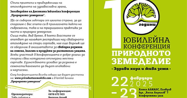В условията на глобализация, подмяна на ценностите в живота, химизация на ежедневието ни в това число земеделието-храната, както и присъствието на ГМО в хранителните продукти, всичко това ни прави по-отговорни към всичко свързано със здравето ни! Храната т.е. Земеделието е Божествен Акт, към който трябва да се отнасяме подобаващо!Отглеждането на нашата храна става все по-наложащо и отговорно, повече от всякога.Това е и Мисията на Конференцията –Природното земеделие.